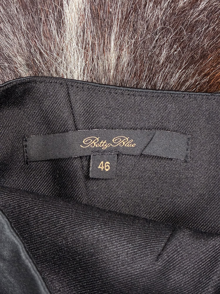 I sourced this structured Betty Blue corset for its sleek tailoring and subtle glamour. The piece features a satin-trimmed neckline, boning throughout the bodice for support, and a crystal-embellished bow detail at the front. Era: