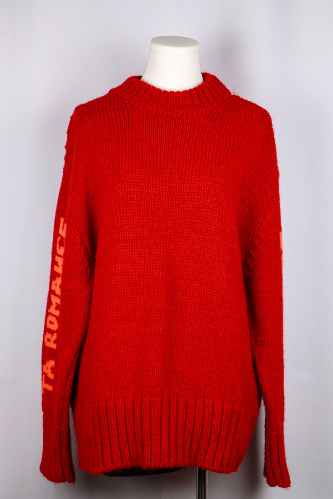 Cop Copine Red Wool Crewneck “Ta Romance…Du Soir” Sleeve Knit